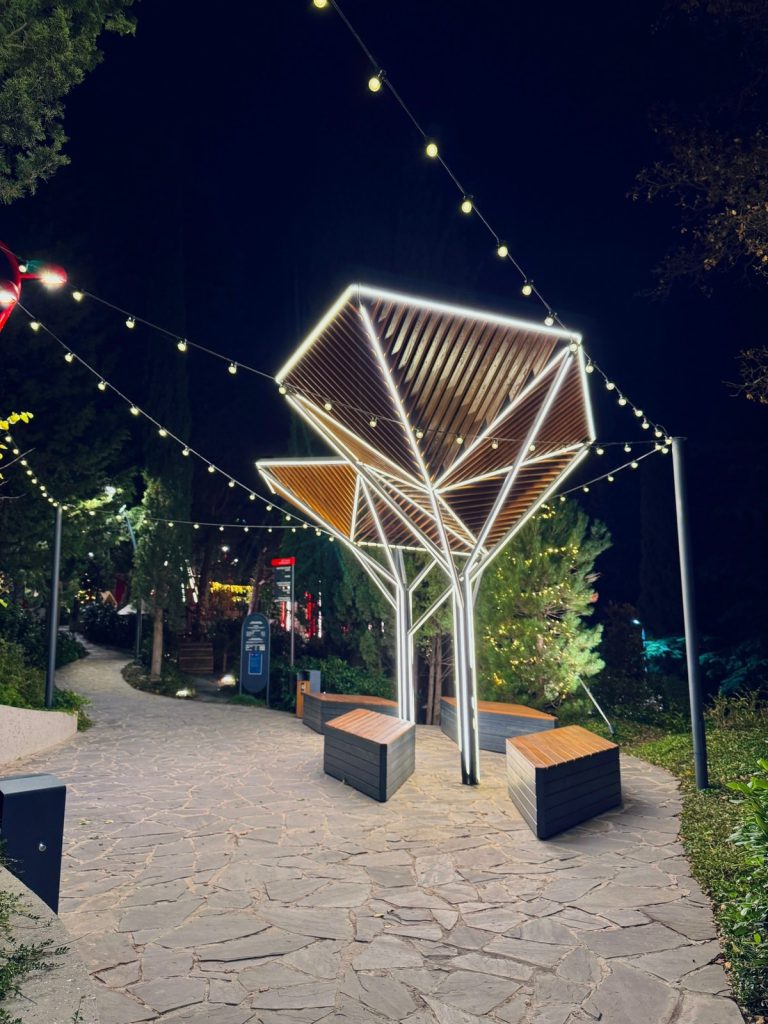На территории парка разместились игровая, прогулочная и спортивная зоны с тренажёрами, скалодромом и столами для настольного тенниса и шахмат, а также амфитеатр и смотровая площадка с видом на море. Символическим входом стала восстановленная арка бывшего санатория — единственное сохранившееся здание старой здравницы, которое подчёркивает историческую преемственность места. Рядом с амфитеатром работает кафе «Шалость». Вход в парк бесплатный.